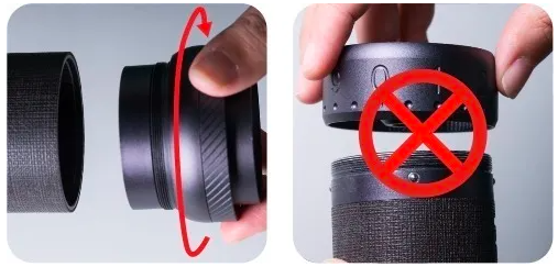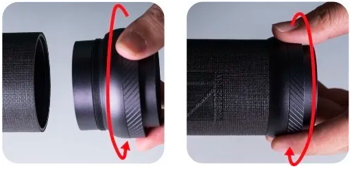 ![]() | Käännä porarengasyksikköä taaksepäin (käännä kierteet) tiukimpaan asentoon. |
