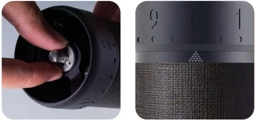 - Jauhin on käyttövalmis suoraan pakkauksesta. Käännä säätörengasta vastapäivään kokonaan aloituspisteeseen, jossa vastus alkaa ja kammen kahva ei pyöri vapaasti. Numero 0 on asteikon merkin kohdalla ja säätörenkaan alareuna koskettaa asteikon merkin ensimmäistä tasoa.