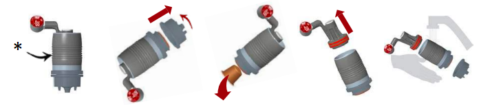 1. Nosta vipua hitaasti ja irrota koottu keittopää GO-rungosta tarttuen silikoniin yllä merkityistä kohdista.