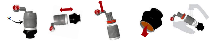Flair 2GO-laitteessasi on useita kääntö- ja kontaktikohtia pisteet, täysin taitettuna. Huomaa, että Käytön aikana Flair 2GO-laitteesi kosketuspisteet kuluvat jonkin verran, mikä näkyy alla olevissa punaisissa pisteissä. Pidämme tätä kunniamerkkinä paljon matkustaneesta elämästä ja erinomaisesta espressosta! |  |