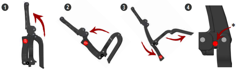 4. Vapauta painamalla punaista painiketta - Vapauta lukko painamalla punaista painiketta ja taita sitten Flair 2GO kokoon suorittamalla vaiheet päinvastaisessa järjestyksessä.