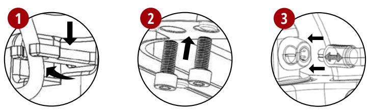 - Suuntaa vipukokoonpanon alaosa langanohjaimen yläosan päälle ja pultaa pohja ja vipukokoonpano yhteen kahdella ruuvilla. Varmista vivun kohdistus ja kiristä se.