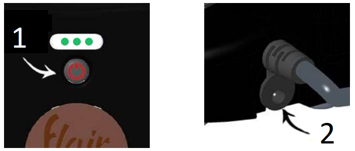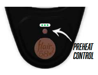 Flair 58 Plus 2 -laitteesi voidaan esilämmittää ja irrottaa sitten johdosta, jotta voit keittää kahvia ilman pistokkeita. Sammuta ensin pohjassa oleva Preheat controller-kytkin.