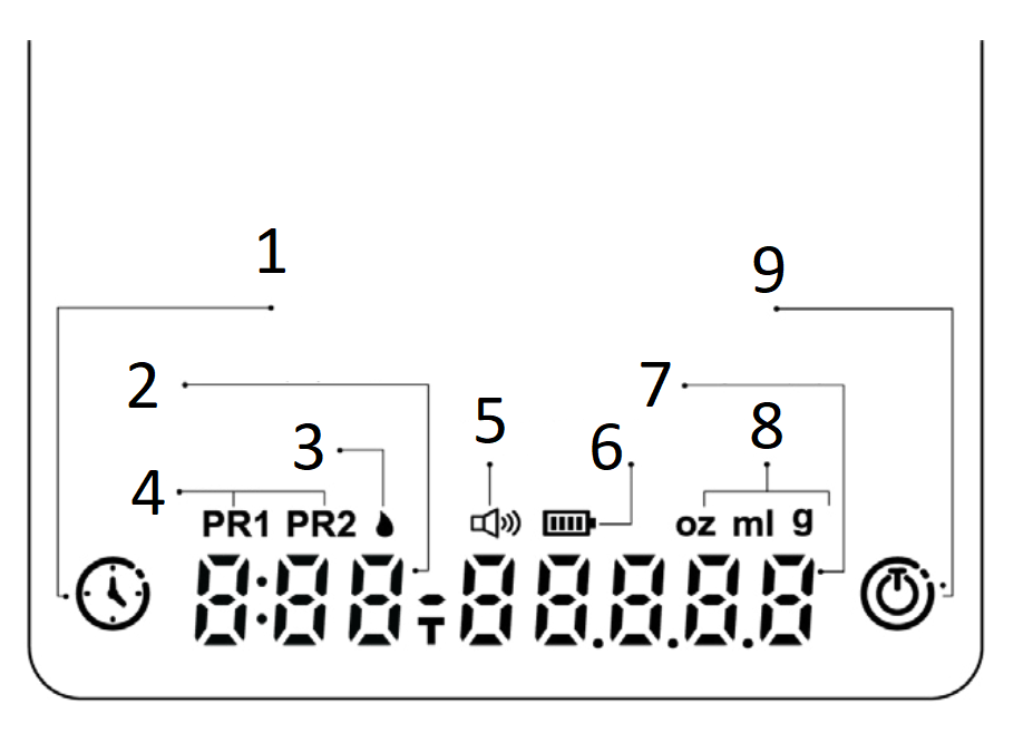 - Akun varaus vähissä: Vilkkuu, kun akun varaus on vähissä. Tämä jatkuu, kunnes näytössä näkyy LO, minkä jälkeen vaaka sammuu automaattisesti.