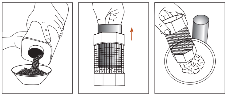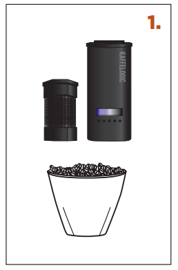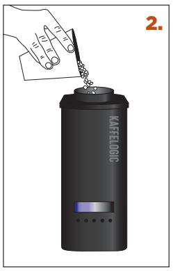 1. KAUHA – käytä tasamittaista kauhallista vihreitä papuja. [Käytä pakkauksessa olevaa kauhaa.] Muussa tapauksessa mittaa 120–160 mℓ tai 90–120 g. Älä täytä liikaa. Jos käytät kofeiinittomia papuja, ne ovat vähemmän tiheitä ja on suositeltavaa lastata painon mukaan] |