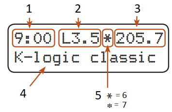 Paina 'valikko'-painiketta toistuvasti selataksesi eri näyttövaihtoehtoja. Paina 'profiili'-painiketta palataksesi yllä näkyvään vakionäyttöön.