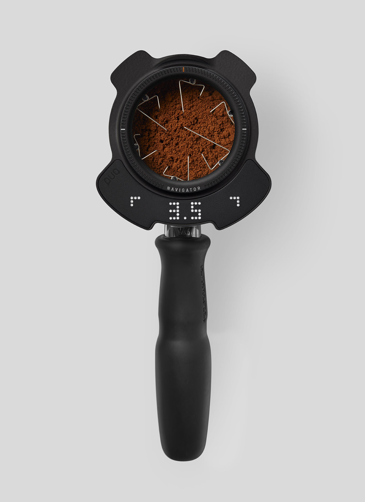 Musta PUQpress Navigator on vallankumouksellinen WDT-työkalu (Weiss Distribution Technique), joka vie kahvin jakelun uudelle tasolle. Se on suunniteltu portasuodattimille, joiden halkaisija on 58–58,3 mm, ja se korvaa manuaalisen jakelun automatisoidulla prosessilla, joka edistää tasaista espresson uuttoa.