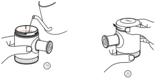 - Aseta suppilo vesisäiliöön yllä olevan kuvan mukaisesti