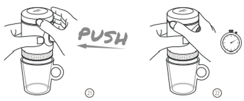 23. Jatka pumppaamista, kunnes olet saavuttanut halutun kahviannoksen suhteessa 1:2 (36 g espressoa ja 18 g jauhettua kahvia).